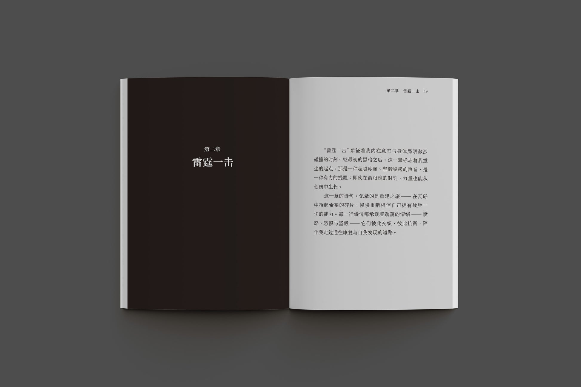 這本書,獻給那些曾站在人生懸崖邊緣的人們——那些生命被劃分為「之前」與「之後」的人。它為經歷過巨大震盪、身陷哀傷與迷茫,並試圖做出改變的讀者而書寫。這本書中的詩句不只是慰藉,更是方向,可作為陷入絕境者的心靈陪伴,以及通往靜默且頑強重生之路的指引。
