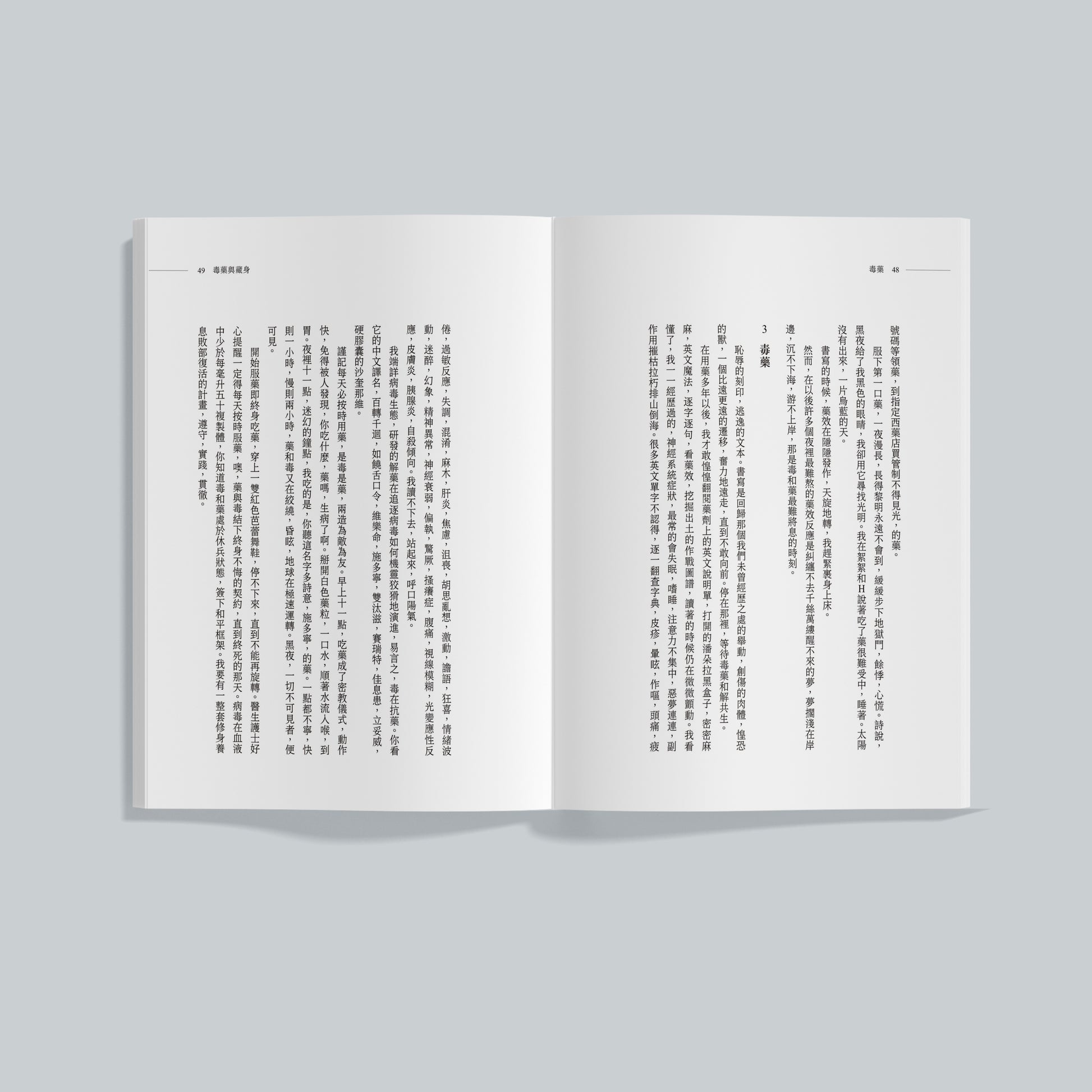 《毒藥與藏身》收錄十八篇散文,跨越廿年,編織一部關於裸命經驗的罔兩文本。作者以同志慾望為底色,揭露與隱藏帕斯堤的生命刻辱,叨絮情愛、友誼與記憶,呈現文學裸露與修辭掩蔽間的張力與自由。